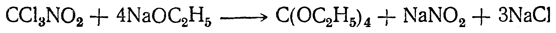 Ортоугольный эфир С(ОС2Н5)4 получается действием хлорпикрина на алкотолят натрия: