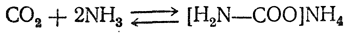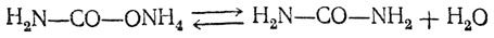 При нагревании карбамат аммония теряет молекулу воды и под давлением частично превращается в мочевину: