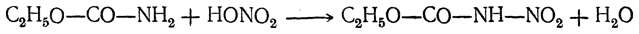 Действием азотной кислоты на уретан можно получить нитроуретан, в котором нитрогруппа связана с азотом:
