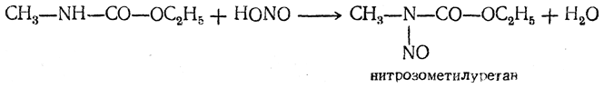 При действии азотистой кислоты на моноалкилированные при азоте уретаны образуются нитрозоуретаны, например: