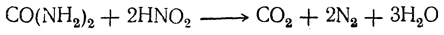 Действие на мочевину азотистой кислоты, как и в случае других амидов, ведет к образованию СО2 с выделением азота: