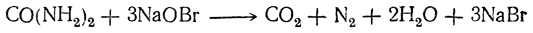 Свободный азот выделяется из мочевины также при действии гипохлоритов и гипобромитов: