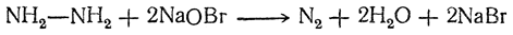 Как показал П. И. Шестаков, первоначальным продуктом при действии брома и щелочи на мочевину является гидразин NH2—NH2, образование которого аналогично образованию аминов из амидов кислот. Выделение азота есть результат дальнейшего действия гипохлоритов (или гипобромитов) на гидразин: