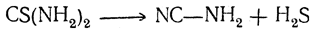 Тиомочевина — кристаллы с т. пл. 172° С — легко растворяется в воде, трудно в спирте. При обработке тиомочевины окисью ртути отщепляется сероводород и получается цианамид: