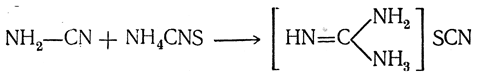 Отщепление сероводорода частично происходит и при нагревании тиомочевины в процессе ее синтеза из роданистого аммония. Однако в этом случае образовавшийся цианамид соединяется с роданистым аммонием, причем получается роданистоводородный гуанидин: