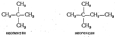 За стандарт горючего вещества с большой способностью к детонации принят нормальный гептан. Чем более разветвлена углеродная цепь парафинового углеводорода, тем лучше совершается процесс горения его в двигателе и тем большую степень сжатия горючей смеси можно допускать. Таким образом, изопарафины, содержащие третичные атомы углерода, ведут себя лучше нормальных парафинов; еще лучше оказываются неопарафины (парафины, содержащие четвертичные углеродные атомы), как, например, неопентан и неогексан: