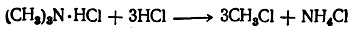 Хлористый метил СН3Cl представляет собой газ, нерастворимый в воде, но растворяющийся в метиловом и этиловом спиртах. Получается он из метилового спирта насыщением хлористым водородом при нагревании в автоклаве под давлением. Его готовят также нагреванием хлористоводородного триметил-амина с соляной кислотой: