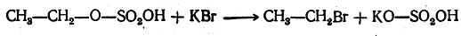 Бромистый этил С2Н5Br приготовляется обыкновенно действием этилсерной кислоты на бромистый калий или натрий:.