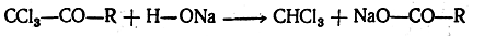 Трехзамещенные галоидные производные метана можно получить действием галоида и щелочи из очень большого числа органических веществ, в молекуле которых радикал метил связан с атомом углерода, соединенным с кислородным атомом, например из соединений типов: