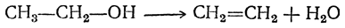 Реакции, идущие с отнятием воды, могут в конечном результате приводить к образованию или этиленовых углеводородов, или простых эфиров. В первом случае молекула воды выделяется из одной молекулы спирта (за исключением метилового)