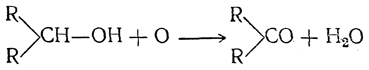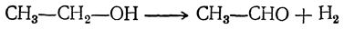 7-8. Отщепление водорода. Превращение первичных и вторичных спиртов в альдегиды и кетоны может происходить и при пропускании паров спирта над накаленными металлами — никелем, железом, цинком и пр., причем спирт распадается на альдегид (соответственно — кетон) и водород: