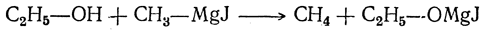 Образующийся при реакции метан можно собрать и измерить, чем пользуются для количественного определения гидроксильных групп в спиртах (Л. А. Чугаев, Ф. В. Церевитинов).