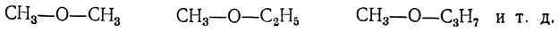 От простейшего из эфиров — диметилового эфира, или просто метилового эфира, СН3—О—СН3 последовательным замещением атомов водорода в одной из метальных групп на остаток метил можно произвести гомологический ряд: