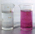 При добавлении щелочи водный раствор приобретает розовую окраску (см фото).