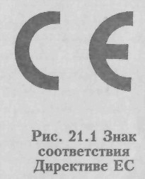 Согласно директивам соответствие может быть оценено самим изготовителем, в результате чего заявлением-декларацией он подтверждает соответствие товара требованиям директивы и удостоверяет это путем маркировки товара знаком (рис. 21.1).