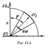 Закон Ламберта устанавливает, что количество лучистой энергии, излучаемое элементом поверхности dF1 в направлении элемента dF2, пропорционально произведению количества энергии, излучаемой по нормали dQn, на величину пространственного угла dщ и cosц, составленного направлением излучения с нормалью (рис.11.2):