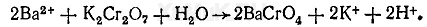 Реакция с хроматом калия. При взаимодействии ионов бария с хроматами образуется, светло-желтый осадок хромата бария, растворимый в минеральных кислотах и нерастворимый в уксусной кислоте. Осадок хромата бария образуется и при взаимодействии ионов бария с дихроматами: