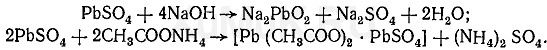 Реакция с ацетатом свинца. К нескольким каплям дистиллята прибавляют 2—3 капли 3 %-го раствора ацетата свинца. При наличии серной кислоты выпадает белый осадок сульфата свинца, который не растворяется в азотной кислоте, но растворяется в едких щелочах и в растворе ацетата аммония при нагревании: