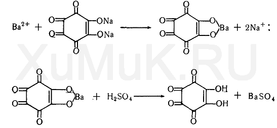 Реакция с родизонатом натрия основана на том, что родизо-нат натрия с солями бария образует родизонат бария, имеющий красную окраску. От прибавления серной кислоты или сульфатов к родизонату бария он разлагается. При этом образуется осадок сульфата бария и исчезает красная окраска родизоната: