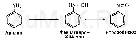 Фенилгидроксиламин, образующийся при метаболизме анилина, может превращаться в нитрозобензол: