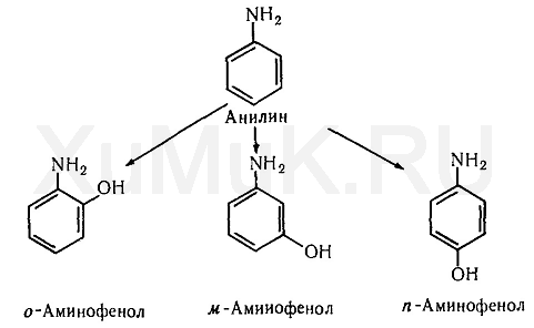 Анилин является аминопроизводным бензола. В организме под влиянием ферментов анилин подвергается гидроксилированию с образованием о -, м- и n -аминофенолов: