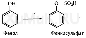 Конъюгация с сульфатами. Фенолы и спирты в организме конъюгируются с сульфатами. При этом образуются конъюгаты, представляющие собой эфиры этих веществ. В организме источником сульфатов, вступающих в реакции конъюгации, является З-фосфоаденозин-5-фосфосульфат. Реакция образования конъюгатов спиртов и фенолов катализуется ферментом сульфотрансферазой.