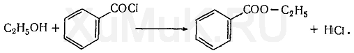 Реакция этерификации. Для этерификации этилового спирта применяют ацетат натрия и хлористый бензоил.