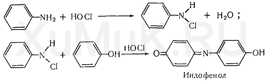 Индофеноловая реакция. При окислении смеси фенолов и аминов (в том числе и аммиака) образуются индофенолы, имеющие соответствующую окраску: