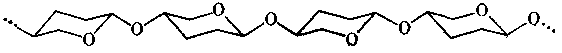 Молекулярную основу механической прочности и стенки бактериальной клетки, и кутикулы членистоногих составляют неразветвленные полисахариды, молекулы которых имеют конформацию жесткого стержня. Такая конформация характерна для полисахаридных цепей, в которых две связи элементарного звена (моносахаридного остатка) ориентированы в пространстве параллельно. Это возможно для пиранозных звеньев, соединенных 1 à 4-связями, если и гликозидный кислород, и кислород при С-4 связаны с циклом экваториально. Одна из наиболее типичных укладок таких звеньев в стержнеобразную макромолекулу, включающая антипараллельную ориентацию соседних остатков, показана ниже: