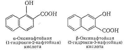 Физические свойства. α-Оксинафтойной кислоты: т. плавл. 200°; раств. в воде 0,053% (17°) и 0,55% (100°); β-оксинафтойной кислоты: т. плавл. 222—223°, раств. в воде 0,104% (25°).