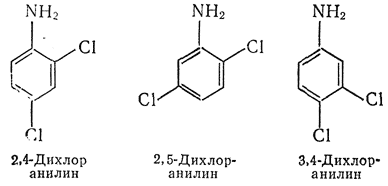 Получаются: 2,4-дихлоранилин — хлорированием ацетанилида с последующим гидролизом ацетильной группы; 2,5- и 3,4-дихлоранилины — восстановлением 2,5- и 3,4-дихлорнитробензолов.