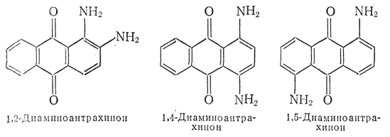 Физические свойства. Твердые окрашенные продукты. Т. плавл. 1,2-диаминоантрахинона 303°, 1,4-диаминоантрахинона 264°, 1,5-диаминоантрахинона 319°.
