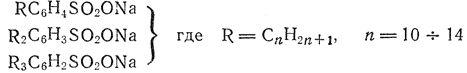 Получаются сульфированием смеси алкилбензолов серным ангидридом в жидком сернистом ангидриде с последующей нейтрализацией. Сульфонол НП-1 и детергент ДС-РАС — из додецилбензола, сульфонол НП-3 — из продуктов алкилирования бензола α-олефинами нормального строения, волгонат — из продуктов алкилирования бензола олефиновыми углеводородами C12—C18.