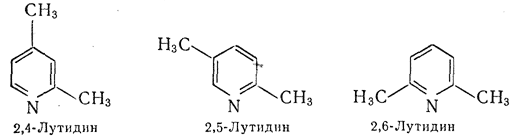 Физические и химические свойства. Бесцветные жидкости. Т. кип. 2,4-лутидина и 2,5-лутидина 157°; плотн. 2,4-лутидина 0,9273 (25°/4°), 2,5-лутидина 0,9261 (25°/4°). Раств. в воде 2,4-лутидина 20 г/100 мл; растворяется в спирте. Перегоняется с водяным паром. Окисляется до лутидиновой кислоты.