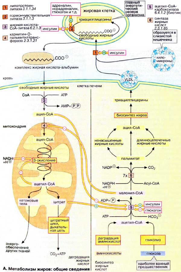 Жирные кислоты поступают из плазмы крови в ткани; здесь из них синтезируются жиры или за счет окисления получается энергия. Особенно интенсивен метаболизм жирных кислот в клетках печени (гепатоцитах).