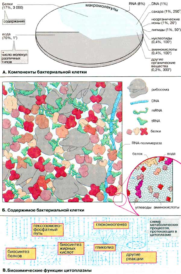 — наконец, 50000 неорганических ионов: остальной объем занимает вода.