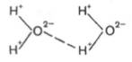 Благодаря особенностям строения атома водорода при достаточном сближении двух молекул воды возникает электростатическое взаимодействие между атомом кислорода одной молекулы и атомом водорода второй молекулы воды. Следствием этого является ослабление связи между атомами водорода и кислорода в каждой молекуле воды и соответственно возникновение новой, непрочной связи (отмечена пунктиром) между атомом водорода первой молекулы и атомом кислорода второй молекулы воды. Эту непрочную связь принято обозначать водородной связью.
