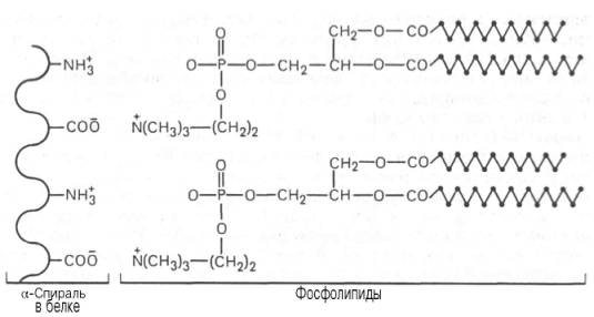 Рис. 2.4. Ионный тип связи между белками и фосфолипидами.