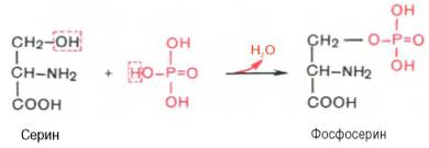 Новые данные свидетельствуют о том, что в клетках фосфопротеины синтезируются в результате посттрансляционной модификации, подвергаясь фосфорилированию при участии протеинкиназ. Этот процесс подробно рассматривается в главе 14. Здесь лишь укажем на существенную роль специфической протеинкиназы, катализирующей фосфорилирование ОН-группы тирозина, в биосинтезе онкобелков. Таким образом, уровень фосфопротеинов в клетке зависит в значительной степени от регулирующего действия ферментов, катализирующих фосфорилирование (протеин-киназы) и дефосфорилирование (протеинфосфатазы). Следует отметить, что фосфопротеины содержат органически связанный, лабильный фосфат, абсолютно необходимый для выполнения клеткой ряда биологических функций. Кроме того, они являются ценным источником энергетического и пластического материала в процессе эмбриогенеза и дальнейшего постна-тального роста и развития организма.