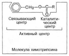При помощи методов ингибиторного анализа были предприняты попытки установить закономерности состава и структуры активных центров у ферментов, относящихся к разным группам. В частности, при использовании диизопропилфторфосфата (ДФФ), принадлежащего к так называемым нервным ядам, наблюдается полное выключение активного центра холинэстеразы – фермента, катализирующего гидролиз ацетилхолина на холин и уксусную кислоту. Оказалось, что этот ингибитор имеет близкое структурное сходство с ацетилхолином и подобно ему взаимодействует с ОН-группой остатка серина в активном центре. Вызывая фосфорилирование серина в активном центре ряда других ферментов, ДФФ также инактивирует их действие: