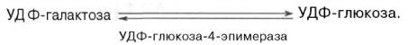Образовавшийся глюкозо-1-фосфат в дальнейшем либо переходит в глюкозо-6-фосфат и далее подвергается уже известным превращениям, либо под влиянием фосфатазы образует свободную глюкозу, а УДФ-га-лактоза подвергается весьма своеобразной эпимеризации: