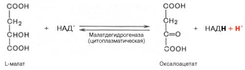 Реакция протекает при участии митохондриальной НАД-зависимой малатдегидрогеназы. В митохондриях отношение НАДН/НАД+ относительно велико, в связи с чем внутримитохондриальный оксалоацетат легко восстанавливается в малат, который легко выходит из митохондрии через митохондриальную мембрану. В цитозоле отношение НАДН/НАД+ очень мало, и малат вновь окисляется при участии цитоплазматической НАД-зависимой малатдегидрогеназы: