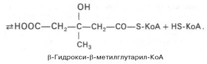 Затем при последующей конденсации ацетоацетил-КоА с 3-й молекулой ацетил-КоА при участии гидроксиметилглутарил-КоА-синтазы (ГМГ-КоА-синтаза) образуется β-гидрокси-β-метилглутарил-КоА: