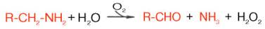 R-CH2-NH2+ Е-ФАД + H20-> R-CHO + NH3+ Е-ФАДН2 (1)