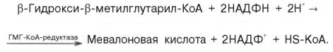 Таким образом, биосинтез холестерина в печени регулируется по принципу отрицательной обратной связи. Чем больше холестерина поступает с пищей, тем меньше его синтезируется в печени, и наоборот. Принято считать, что действие экзогенного холестерина на биосинтез его в печени связано с торможением β-гидрокси-β-метилглутарил-КоА-редуктазной реакции:
