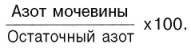 Как отмечалось, в количественном отношении главным конечным продуктом обмена белков в организме является мочевина. Принято считать, что мочевина в 18 раз менее токсична, чем остальные азотистые вещества. При острой почечной недостаточности концентрация мочевины в крови достигает 50–83 ммоль/л (норма 3,3–6,6 ммоль/л). Нарастание содержания мочевины в крови до 16–20 ммоль/л (в расчете на азот мочевины) является признаком нарушения функции почек средней тяжести, до 35 ммоль/л – тяжелым и свыше 50 ммоль/л – очень тяжелым нарушением с неблагоприятным прогнозом. Иногда определяют отношение азота мочевины крови к остаточному азоту крови (в процентах):