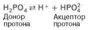 Фосфатная буферная система представляет собой сопряженную кислотно-основную пару, состоящую из иона Н2РО4– (донор протонов) и иона НРО42– (акцептор протонов):