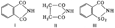 Имиды кислот, соединения, содержащие два ацильных остатка, связанных с группой NH. Известны линейные и циклические имиды кислот. Наибольшее значение имеют последние — производные двухосновных кислот, например фталимид (I, tпл 233,5—238 °С), сукцинимид (II, tпл 125—127 °С), имид о-сульфобензойной кислоты (III, сахарин, tпл 226—230 °С):