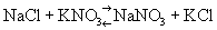 Ионный обмен, обмен ионов в растворах электролитов (гомогенный ионный обмен). При смешении разбавленных растворов электролитов, например NaCl и KNO3 в смеси присутствуют ионы Na+, К+, NO3— и Cl—. Равновесное состояние выразится в этом случае уравнением: