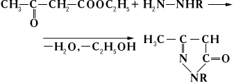 2) Синтез 5-пиразолонов конденсацией эфиров b-кетокислот с гидразинами: